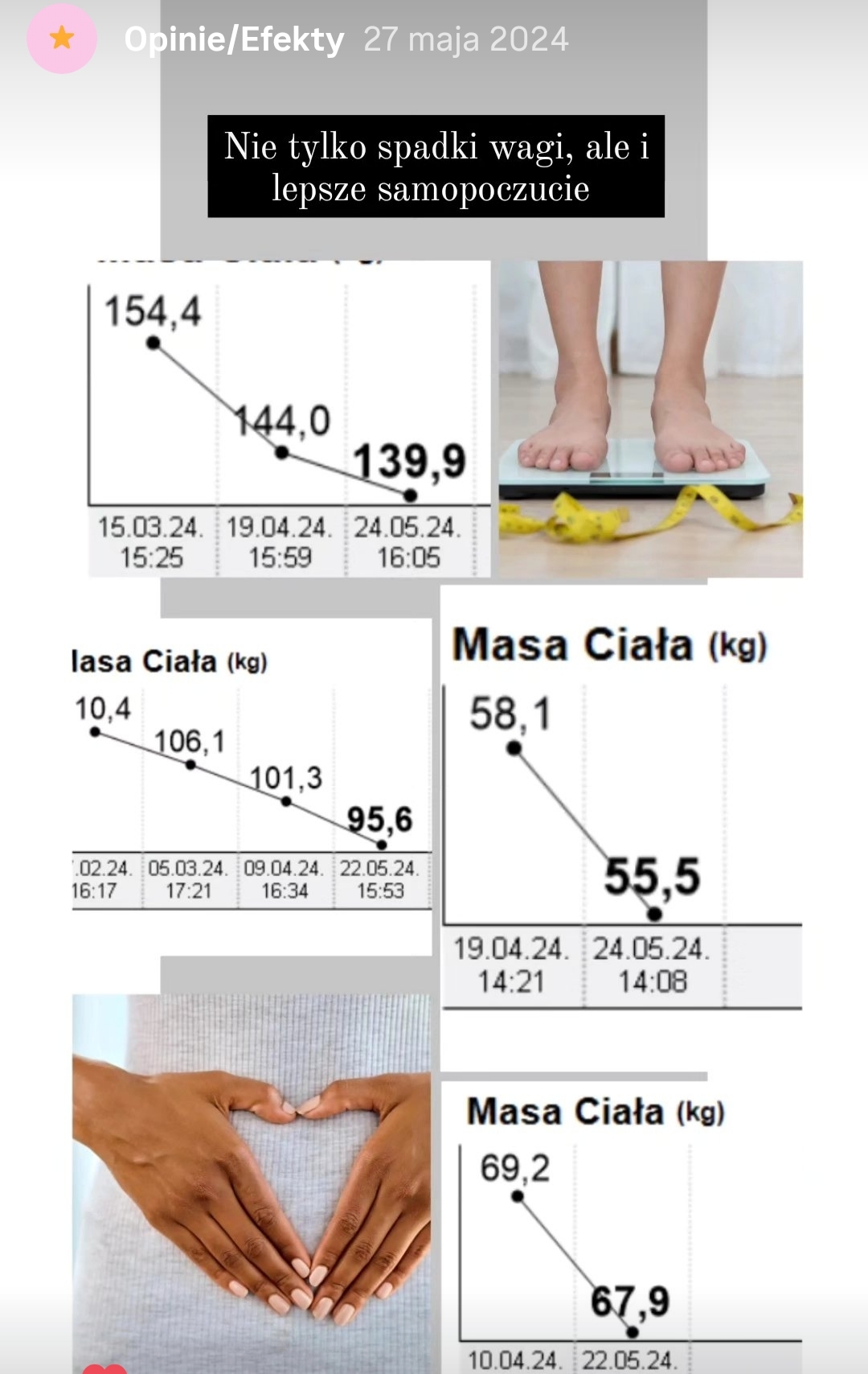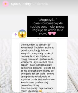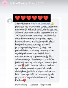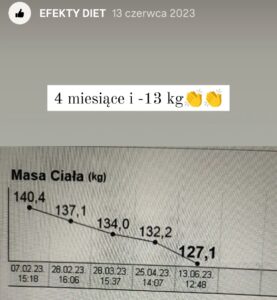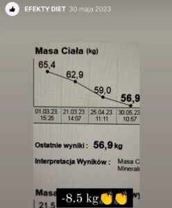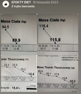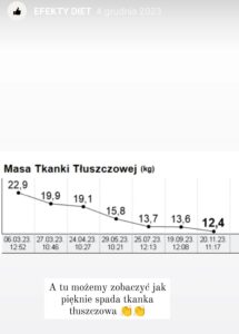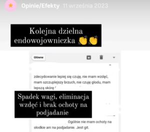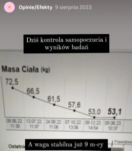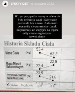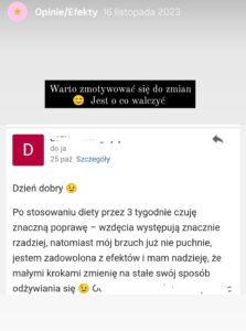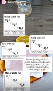 Prezentowane opinie pochodzą z platformy Instagram, analizatora składu ciała oraz korespondencji elektronicznej. Bieżące efekty dostępne na Instagramie.